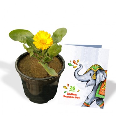 1)One black cylindrical shaped pot with Justsolvenursery logo.2)Contains Manured Mud.3)with Bloomed Stems of Marie Gold Plant4)Along with that One Occasional Card Note You can reuse the pot ..