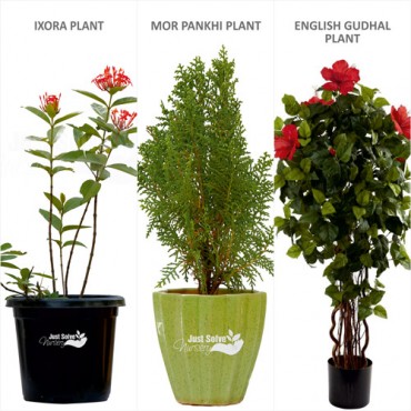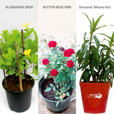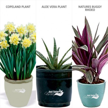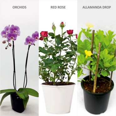 Product Description1) Three Pack of Plant (Each of different Variety ) with Justsolvenursery logo.2) Contains Manured Mud.3)with Bloomed Stems in each.Note You can reuse the pot once the flowers ..