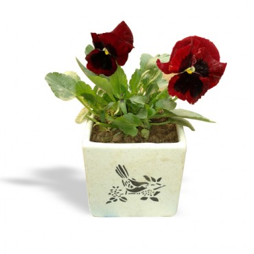 1) One White Rectangular shaped pot with Justsolvenursery logo.2) Contains Manured Mud.3)with Bloomed Stems of Pansy Plant (4 inch tall).Note You can reuse the pot once the flowers wither away.Th..