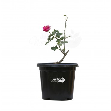 1) One Black cylindrical shaped pot with Justsolvenursery logo.2) Contains Manured Mud.3)With few fully bloomed Stems of the Button Rose (Pink) Plant.Note You can reuse the pot once the Plan..