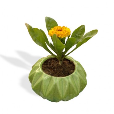 1) One Green Ceramic pot with Justsolvenursery logo.2) Contains Manured Mud.3)with Bloomed Stems of Calendula PlantNote You can reuse the pot once the flowers wither away.This Arrangement is to k..