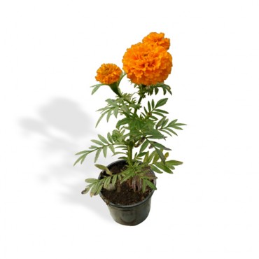 1) One Black cylindrical shaped pot with Justsolvenursery logo.2) Contains Manured Mud.3)with Bloomed Stems of Marigold PlantNote You can reuse the pot once the flowers wither away.This Arrangeme..