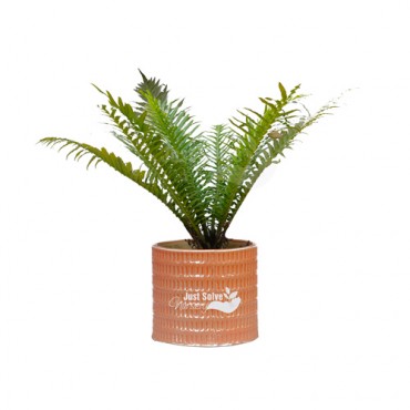 1) One Brown Ceramic Cylindrical shaped pot with Justsolvenursery logo.2) Contains Manured Mud.3)With few fully bloomed Stems of the Fern Plant.Note:You can reuse the pot once the Plant wither aw..